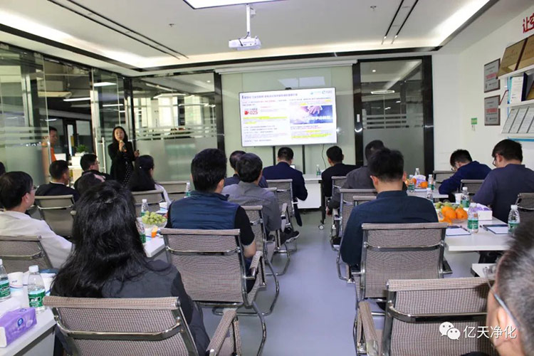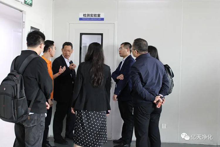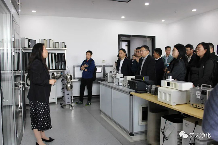 會議第二天,《工業(yè)潔凈室通用規(guī)范》編制組專家團隊一行,在億天公司總經理夏群艷女士的陪同下實地考察了億天凈化公司的潔凈生產車間和綜合性實驗室,現場聽取夏群艷總經理關于潔凈室方案介紹,并就數字化潔凈室解決方案、潔凈行業(yè)的標準化、規(guī)范化等議題展開研討。夏總同時介紹億天公司的發(fā)展歷程和技術成果,億天堅持空氣凈化行業(yè)18余年,與國際領先的環(huán)境檢測儀器公司合作,并積極投入自主技術研發(fā)和產品創(chuàng)新,目前掌握的凈化技術及可溯源污染物的檢測手段等方面均處于行業(yè)領先水平。專家組一行對億天公司緊緊圍繞空氣環(huán)境檢測、治理、監(jiān)測閉環(huán)的管理,積極參與標準制定工作,助潔凈行業(yè)發(fā)展給予了高度評價,億天凈化的數字化工業(yè)潔凈室方案也給《工業(yè)潔凈室通用規(guī)范》的編制工作提供了非常有價值的實際案例參考。