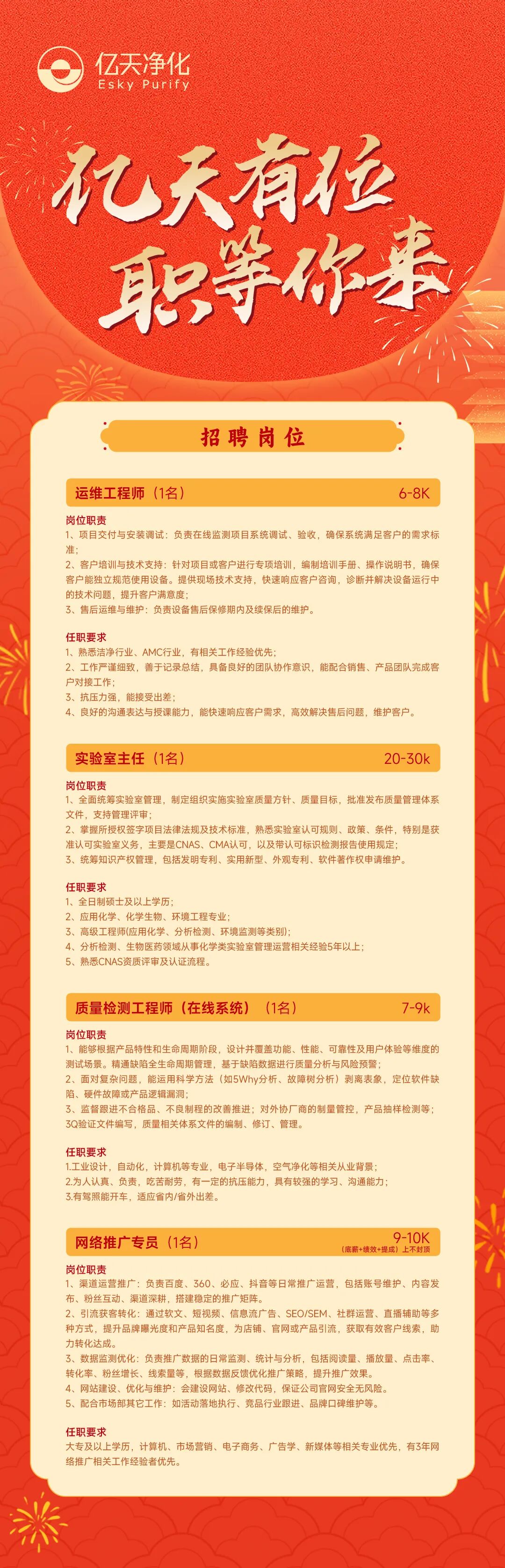 虛位以待,職等你來(lái) | 億天凈化2026人才招募計(jì)劃正式啟動(dòng)