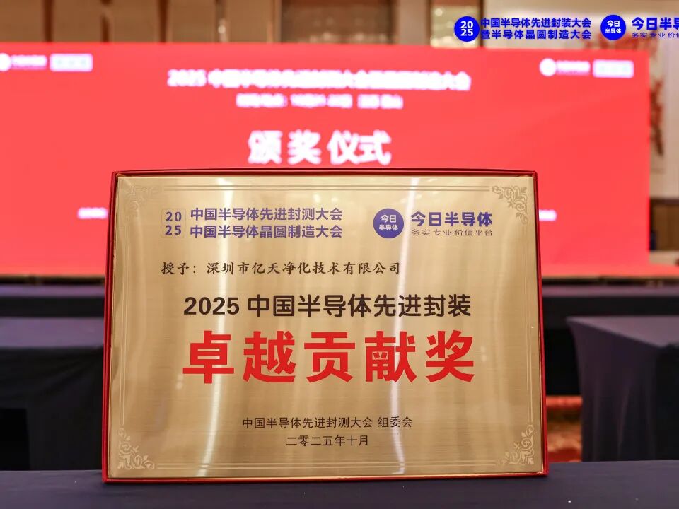 億天凈化作為半導(dǎo)體潔凈領(lǐng)域?qū)I(yè)企業(yè),全程深度參與大會(huì),不僅以交流與分享的姿態(tài),與行業(yè)同仁共尋發(fā)展機(jī)遇,更憑借在半導(dǎo)體潔凈領(lǐng)域的突出成就與深度貢獻(xiàn),一舉斬獲 “2025 中國半導(dǎo)體先進(jìn)封裝卓越貢獻(xiàn)獎(jiǎng)”,成為大會(huì)焦點(diǎn)之一。