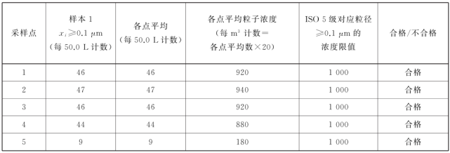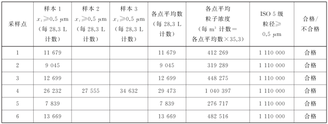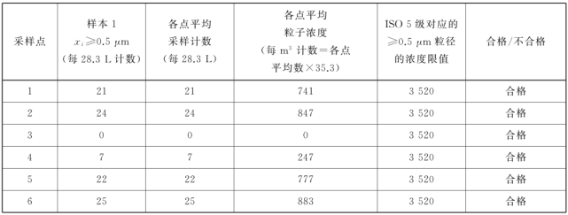 表中所有濃度都是累積濃度,例如ISO5.5 級(jí),0.5μm 粒徑的11100 顆中,包括所有粒徑大于或等于該粒徑的粒子。