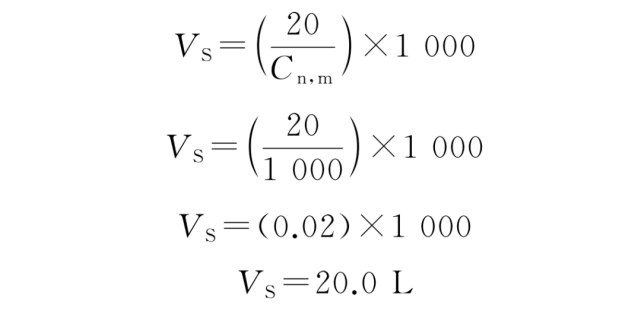 文件給出了確定單次采樣量和各點(diǎn)的采樣時(shí)間的方法:所選最大粒徑的粒子濃度恰好為規(guī)定的ISO 級(jí)別上限時(shí),在各采樣點(diǎn)所采的空氣量足以檢測(cè)到至少20個(gè)粒子。每個(gè)采樣點(diǎn)的單次采樣量VS,按公式(A.2)計(jì)算。