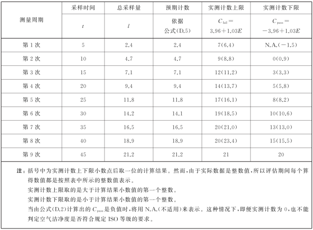 表E.1給出了所允許的非整數(shù)潔凈度等級(jí)。粒子測(cè)量上存在的不確定性使得級(jí)別增加不宜低于0.5,表中的腳注說(shuō)明了由于采樣和粒子采集的局限性而帶來(lái)的限制條件。