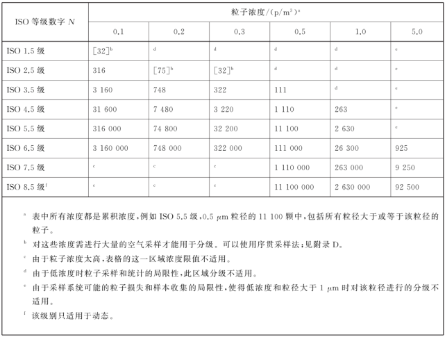 注1:規(guī)定了按空氣懸浮粒子濃度劃分的級(jí)別。
