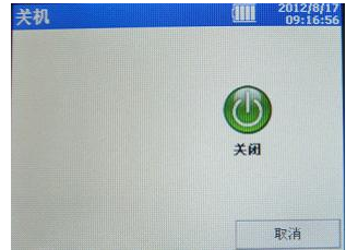 六、測試完畢后,按電源鍵屏幕顯示OFF,點(diǎn)擊此按鈕,儀器關(guān)閉。