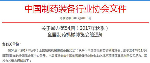第54屆(2017年秋季)全國制藥機械博覽會